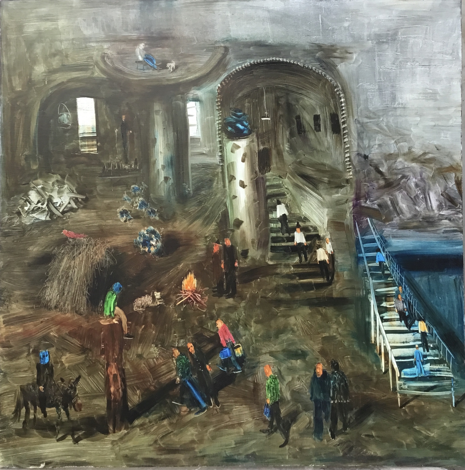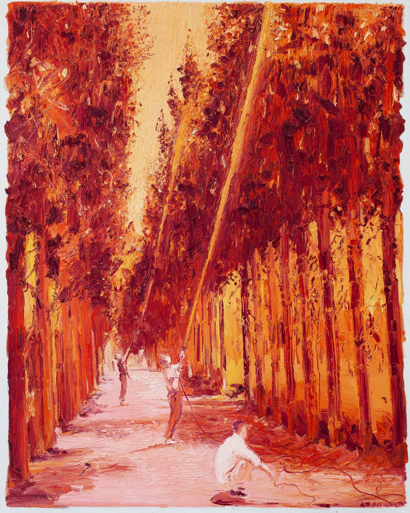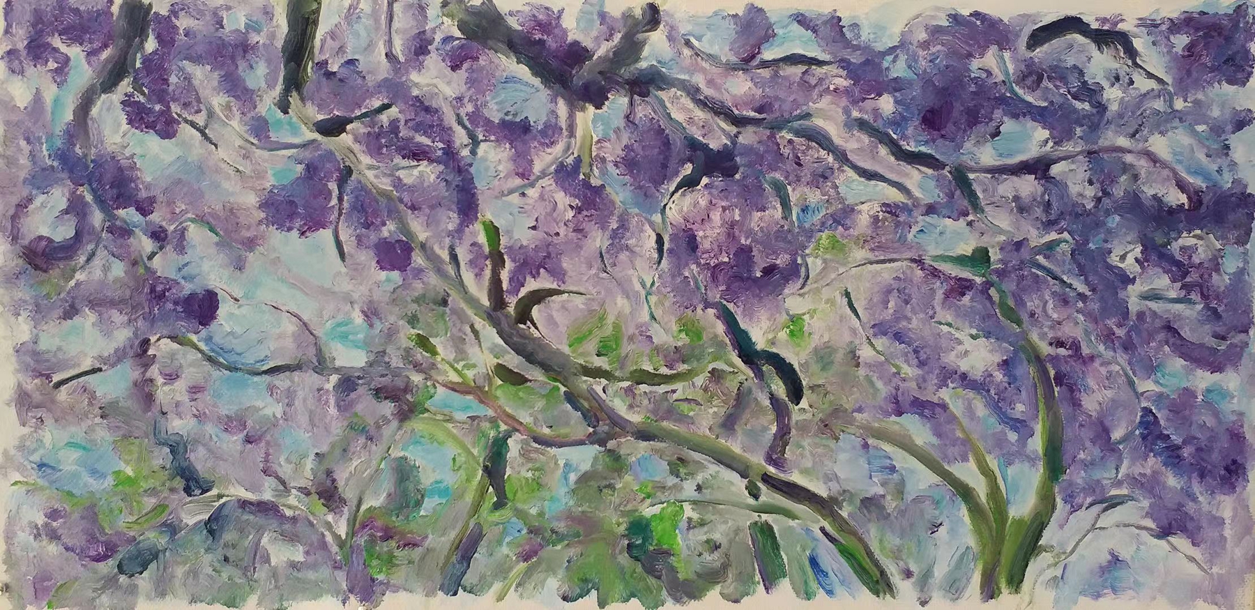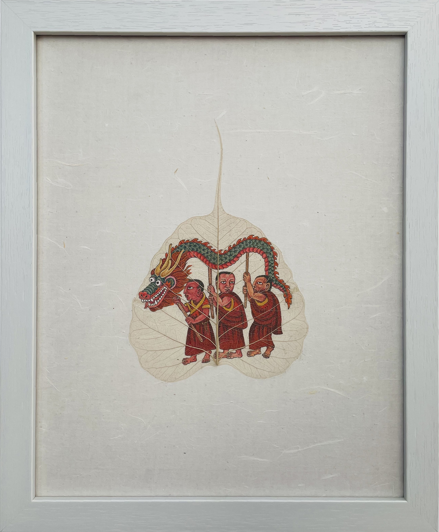 菩提叶丙烯画 Acrylic and Bodhi leaves on canvas