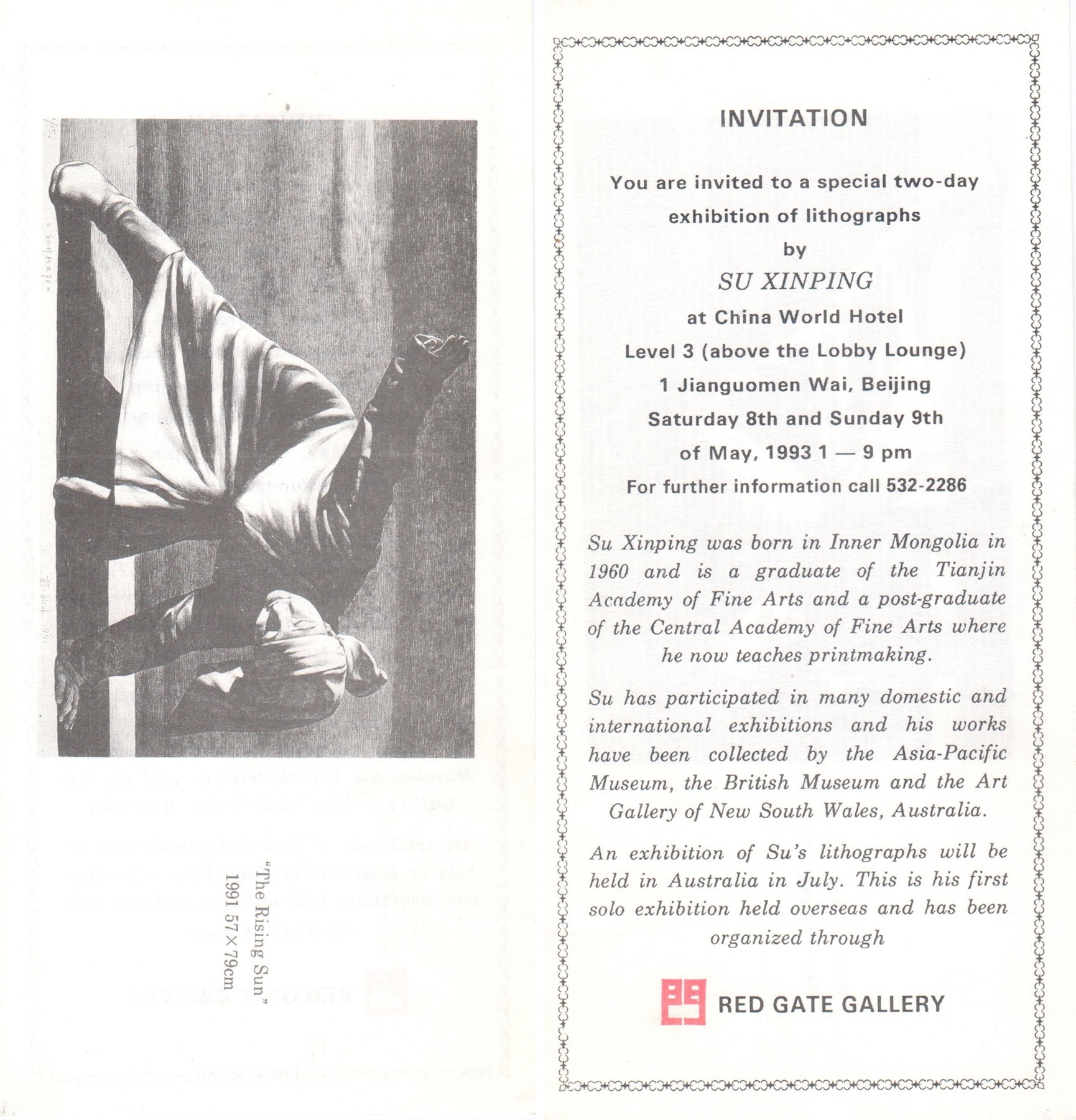 An exhibition of Su’s lithographs will be held in Australia in July. This is his first solo exhibition held overseas and has been organized through.
